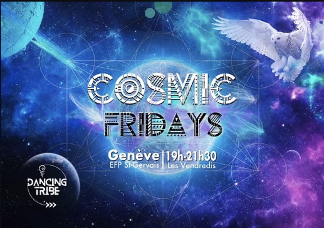 La dancing Tribe de Genève, vous permet d'explorer différentes pratiques de danses libres et j'y interviens durant l'année pour proposer des espaces OpenFloor lors des Cosmic Friday.